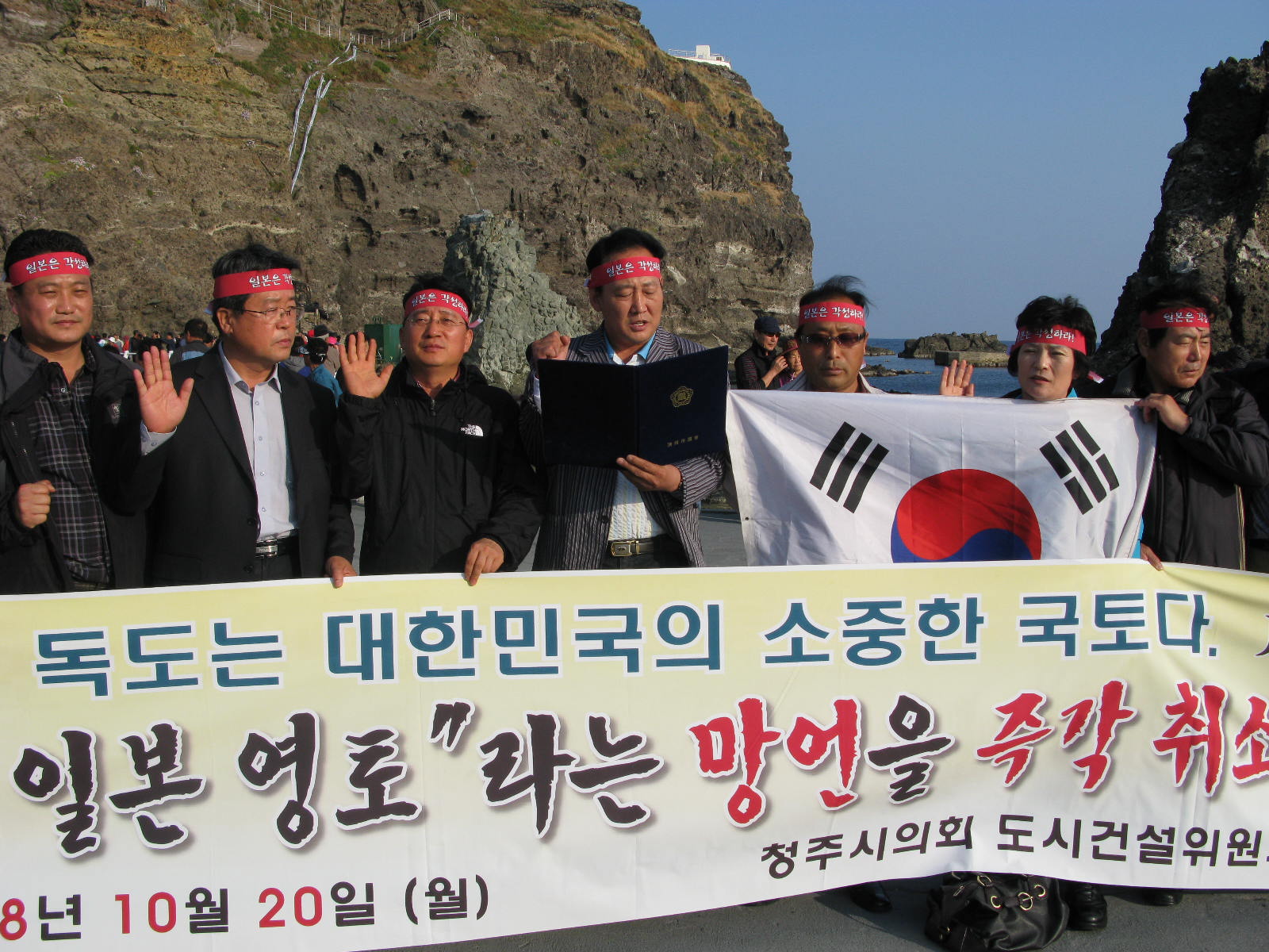 일본정부의 사죄요구 결의문 낭독 및 고용길의장 독도수비대 성금전달