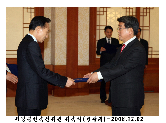고용길 의장 지방분권촉진 위원회 위촉장수여 2008-12-02